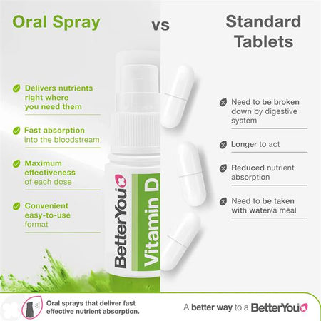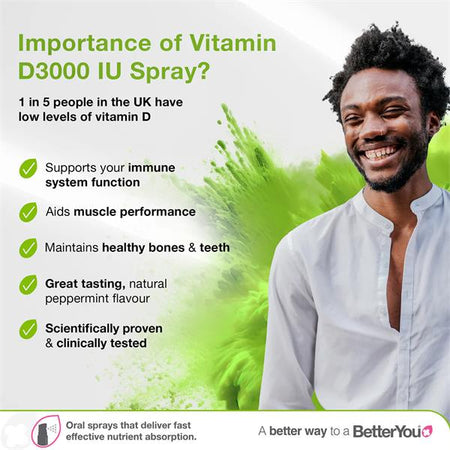 BetterYou DLux 3000 Daily Vitamin D Oral Spray provides a convenient way to supplement vitamin D as part of your daily routine. The spray format delivers vitamin D through the lining of the mouth, offering an alternative to tablets or capsules.