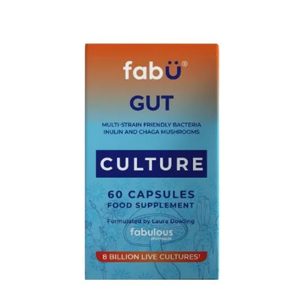 FABU Gut Culture is a daily food supplement designed to support gut health as part of a healthy lifestyle. It combines probiotics and prebiotics to support the balance of gut bacteria and overall digestive wellbeing.