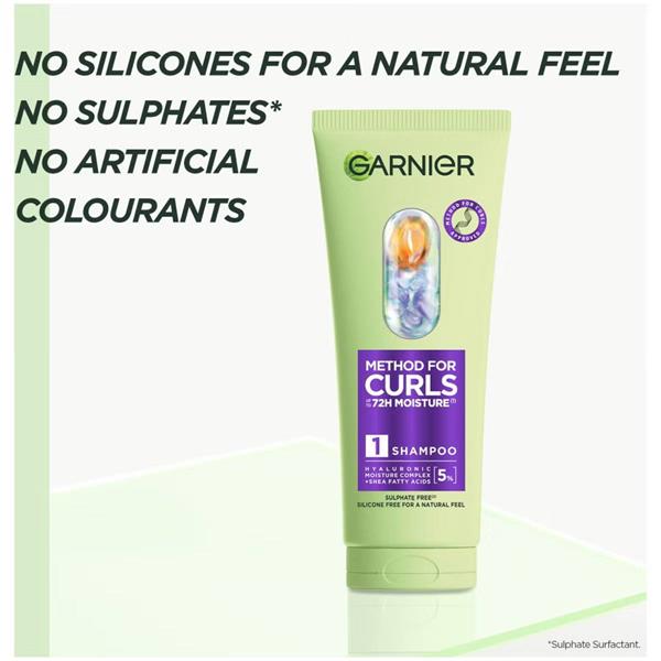 Apply to wet hair and gently massage into the scalp and lengths. Rinse thoroughly. For best results, follow with Garnier Method For Curls Conditioner.