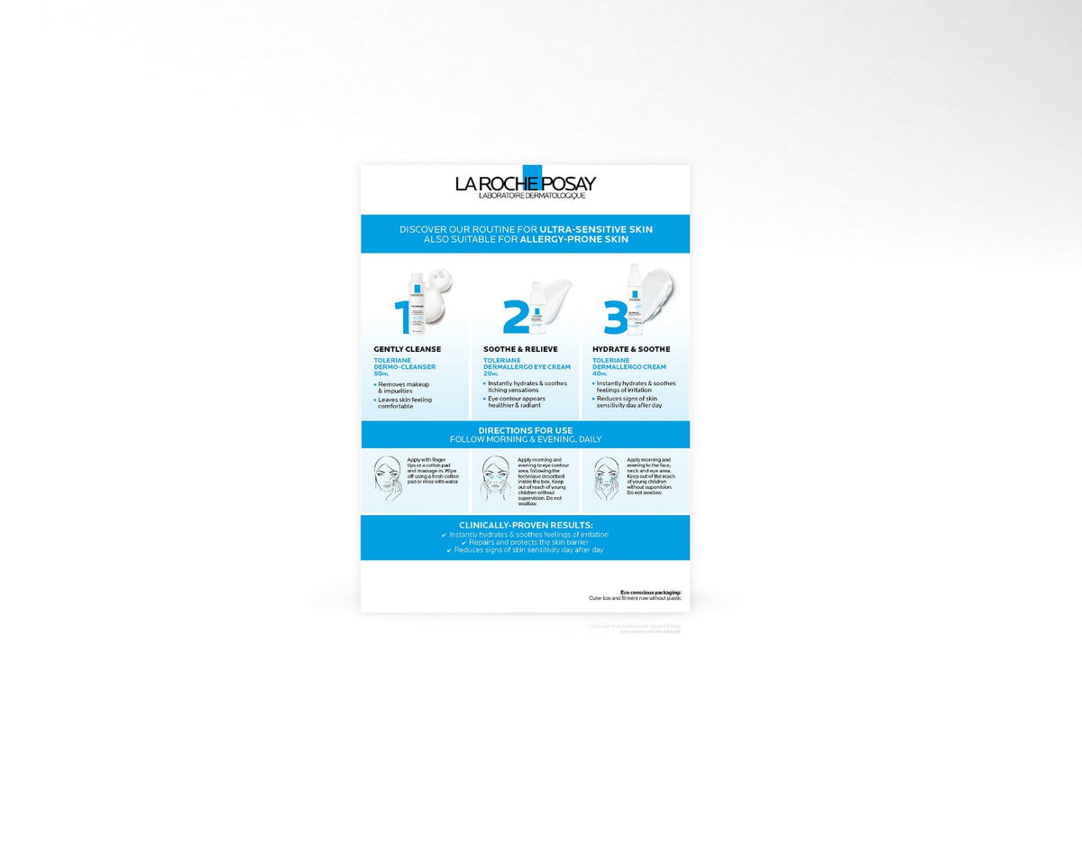 This La Roche-Posay Toleriane Dermallergo Kit 3-step regime is clinically proven to hydrate skin and reduce signs of sensitivity such as dryness, tightness, and itchiness.