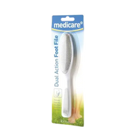 Medicare Dual Action Foot File safely removes even the roughest skin, leaving you with beautifully soft, silky feet to be proud of! This Dual Action Foot File instantly removes the toughest callus and hard skin build up. The coarse surface (on the file head) safely removes even the toughest build up of callus and hard skin, whilst the finer surface (on the file handle) smoothes away any remaining toughness. but gently, removes dead and hard calloused skin, while exfoliating and rejuvenating your feet. It's a good idea to apply some moisturizing lotion to your feet, following exfoliation with the foot file. This will help keep the skin pliable and prevent cracking skin and fissures.