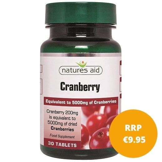 Natures Aid Cranberry contains 200mg of Cranberry. Cranberries support the body's natural defences and help maintain a healthy bladder and urinary tract.