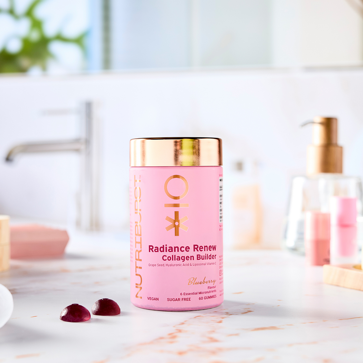 Collagen is an important structural protein in the body and plays a key role in skin, bones, cartilage, ligaments and connective tissues. As we age, natural collagen production reduces. Rather than using animal-derived collagen, Nutriburst Radiance Renew uses a vegan collagen-boosting blend designed to help support the body’s own collagen production.