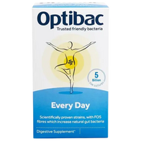 Optibac Every Day is especially for those wishing to take a high quality daily live cultures supplement, from the UK & Ireland’s most trusted and recommended friendly bacteria brand*. It contains 6 well-researched strains of friendly bacteria from the Lactobacillus, Bifidobacterium and Lactococcus genera, all proven to pass through stomach acidity and survive to reach the digestive system. This supplement also contains FOS fibres scientifically shown to increase your body’s natural gut bacteria.