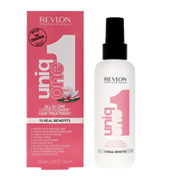 Revlon Professional Uniq 1 All in One Hair Treatment Lotus Flower is a beautifully floral-scented version of Revlon's best-selling original Uniq One hair treatment. Just spritz it on to damp hair to repair, control and add shine! The floral fragrance combines notes of light citrus fruits, lotus flower and musk. It lavishes your hair with benefits, repairing damaged and dry hair, while restoring shine and helping to control frizz, leaving hair smooth and silky. Uniq One protects from heat damage when styling, and it contains UVA and UVB filters to protect your colour. It helps to detangle hair, making it easier to brush, comb and iron, helping your hairstyle to last longer. It even boosts body and volume and helps prevent split ends. That's 10 incredible benefits in just one bottle!