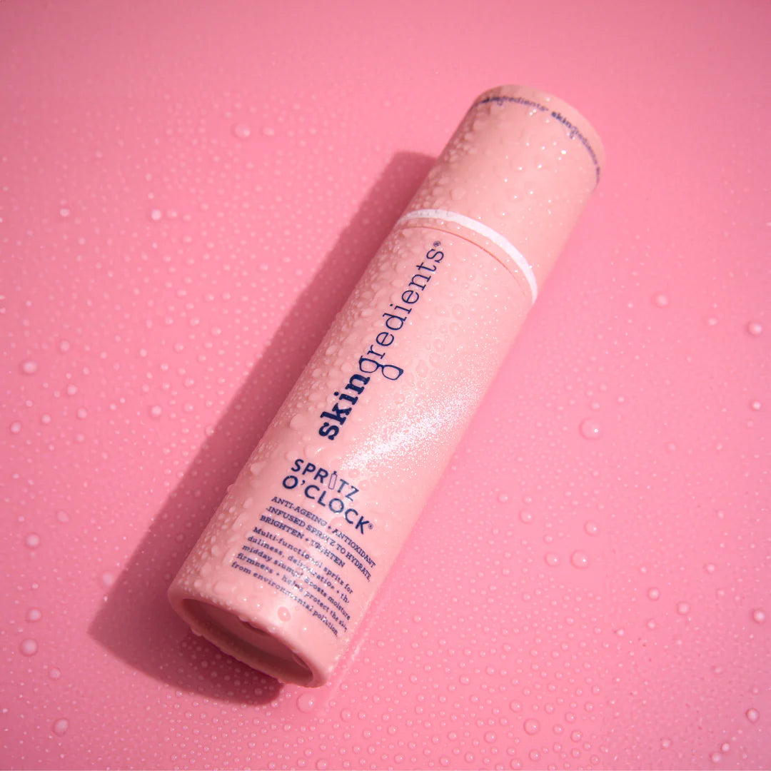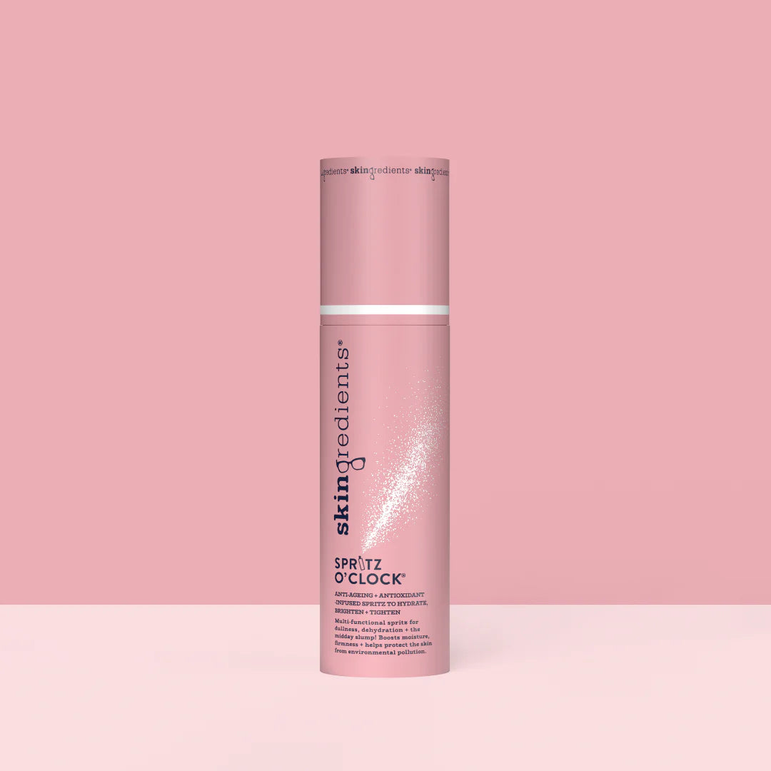 NEW to Skingredients: Spritz O'Clock is an anti-ageing + antioxidant-infused spritz that protects from pollution and offers so much more than just hydration!