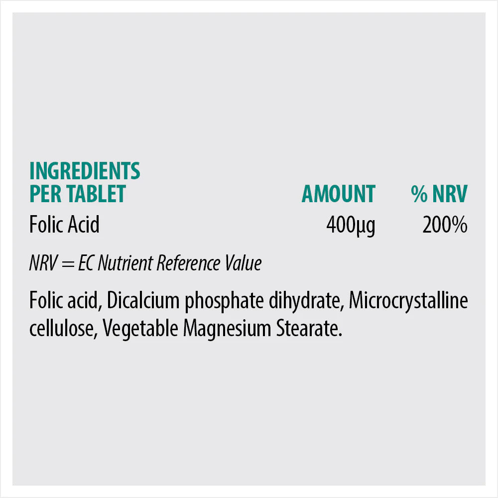SONA FOLIC ACID provides 400μg of this B vitamin which is necessary for maternal tissue growth during pregnancy, cell division and blood formation. Folic Acid is also important for homocysteine metabolism, normal psychological functions, normal amino acid synthesis, the immune system, and the reduction of tiredness and fatigue.