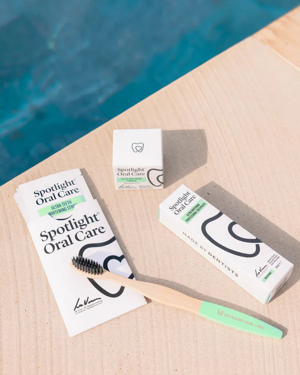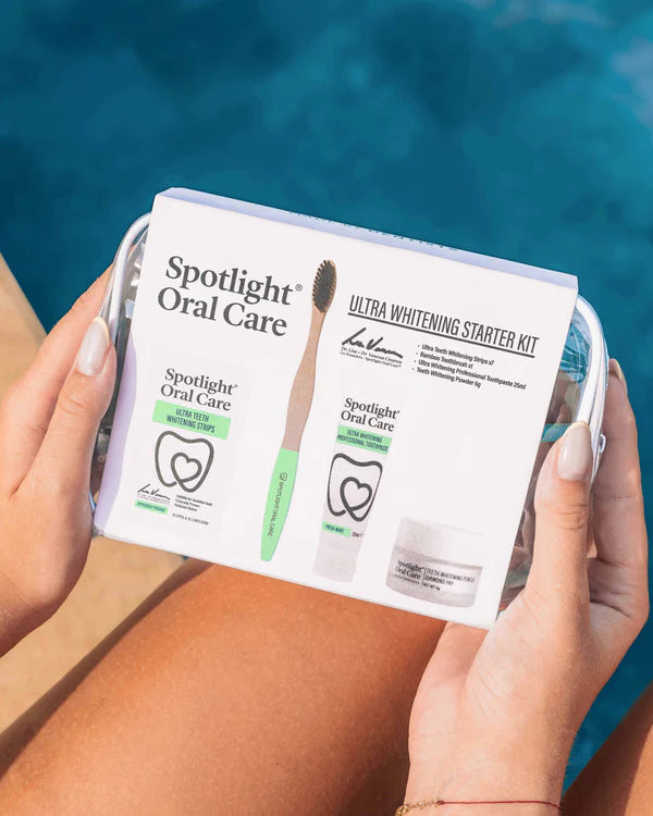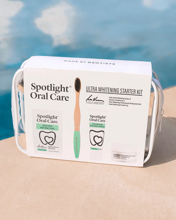 Experience a premium oral care routine with our dentist-developed Ultra Whitening Starter Kit. Combining our best-selling teeth whitening products in a handy, airport-friendly travel pack, this is all you need for complete, on-the-go care and a visibly brighter, healthier smile. Whether it’s trialing something new or taking your favourites with you, the Spotlight Oral Care Ultra Whitening Starter Kit has got you covered!