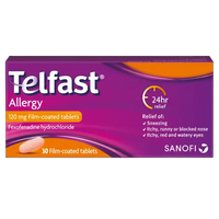 Telfast tablets are now available without a prescription. Telfast tablets contain an effective antihistamine called Fexofenadine 120mg and is used for the relief of allergy symptoms such as sneezing, itchy, runny or blocked nose and eye symptoms such as red and watery eyes. The 120mg Telfast tablets available ovet the counter are called Telfast Allergy.